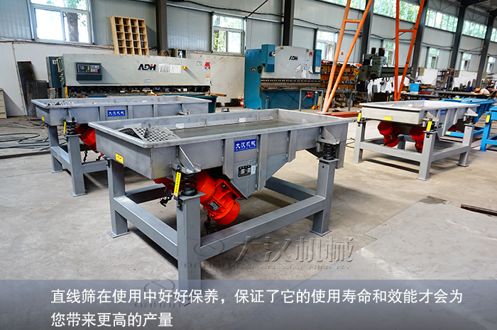 在保持筛面干净的同时,筛面角度的调整也是增加产量的重要方法,筛面倾角为45°如果筛分的物料精度不高,只需要粗筛一下的话,可以适当调节下底座与筛体下面的部分振动弹簧高度,使进料口高度升高就可以加快物料在筛面的运动从而提高产量。